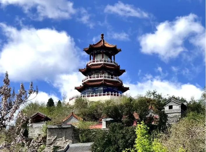 漫山春色与功碑阁形成绝佳构图